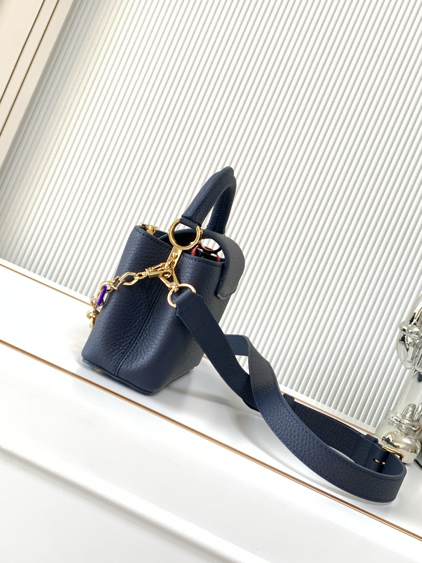 Fits: 6.1-inches smartphone, Capucines Compact Wallet, keys, lipstick, keys
