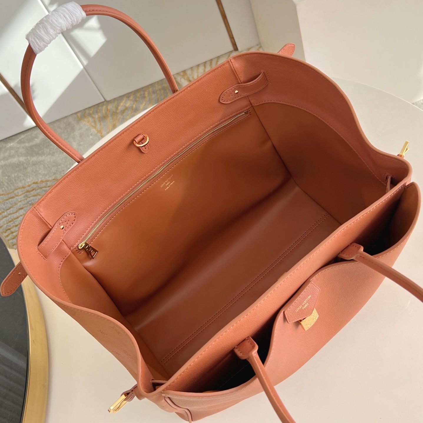 Fits: 2 smartphones, earphones, Capucines wallet, A4 document, travel essentials, keys